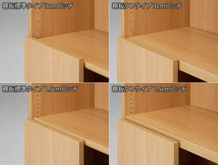 標準/タフ、それぞれのタイプで1.5/3cmピッチでの扉の取付例です。