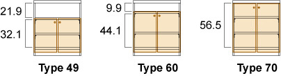 ※数字は、内寸(単位:cm)を表示しています。(棚板タフタイプ、棚板移動ピッチ1.5cmオプション利用)